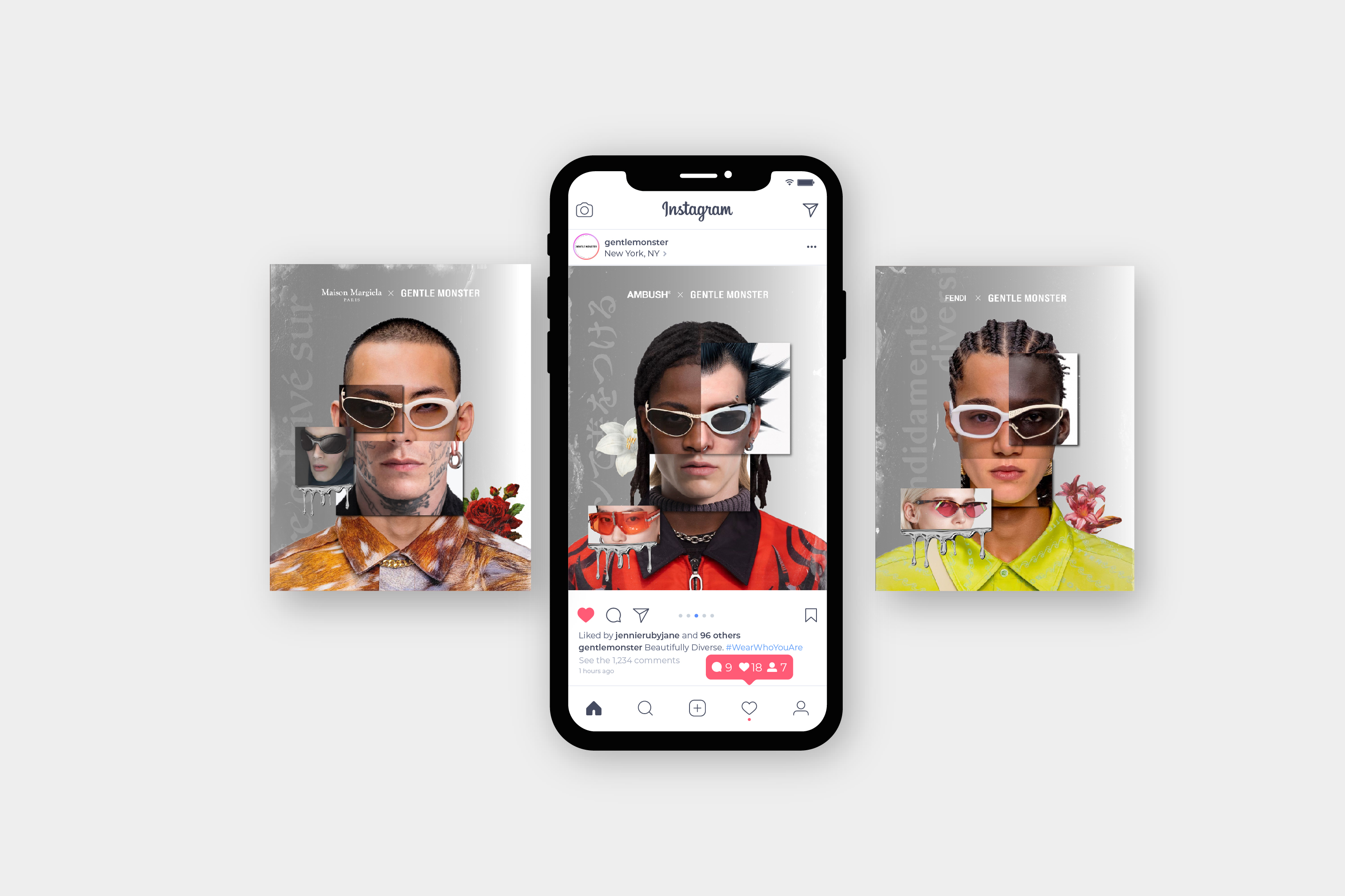 Create a campaign for Gentler Monster that celebrates individuality and diversity through bold design statements. The campaign aimed to reflect the brand’s commitment to embracing diverse cultures and styles while encouraging people to express their authentic selves.